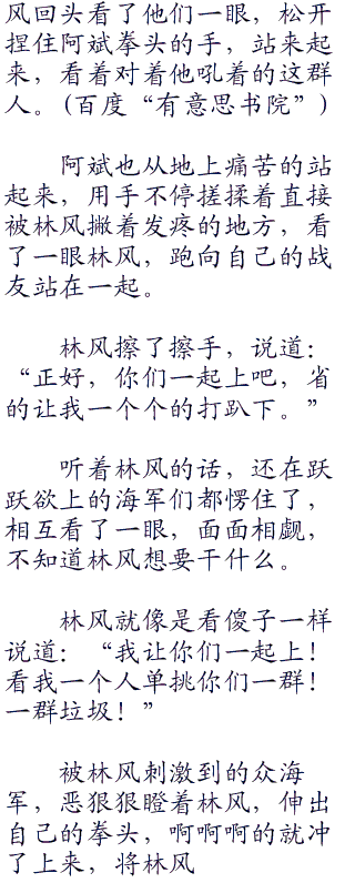 那个海军大声喊道:“是么!你小子要是想要做我们的长官,先打过我阿斌再说!”