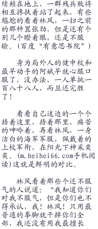 最后只有没有参加这场斗殴的健中校和林风还能站着,其实健中校看的非常仔细。