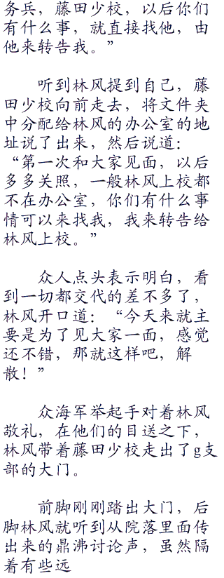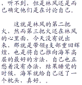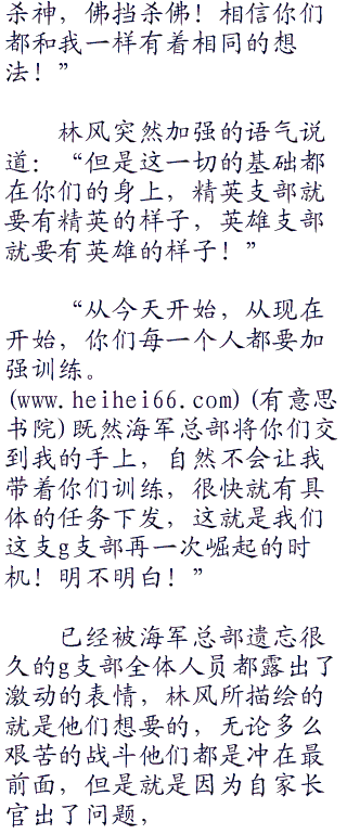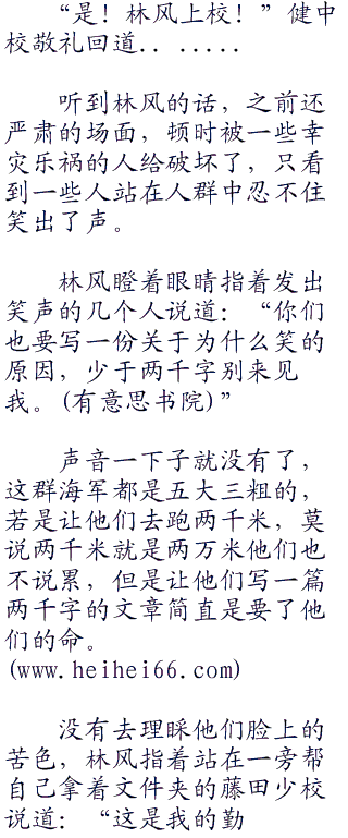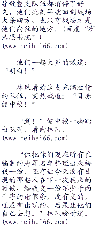 “很好!看来你们没有忘记海军的尊严。”林风开始背着手在这支开始慢慢属于自己的队伍前踱步来回走着,“我的部队没有什么其他的军纪要求,只有一点!”