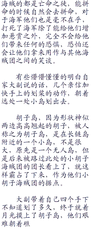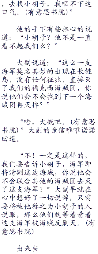 健中校带着两个人回到军舰上,先用船上独有的大型的工具把海贼船撬开,军舰的撞角才得以解放,而海贼船则随着海浪一下子被推了出去。