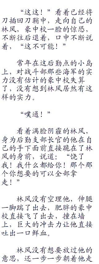 他就自顾自的坐在椅子上,都没有给实际军衔比他大的林风还有健中校搬椅子,看来这个胖子豪中校对自己这个宫殿一样的办公室的掌控很自信。