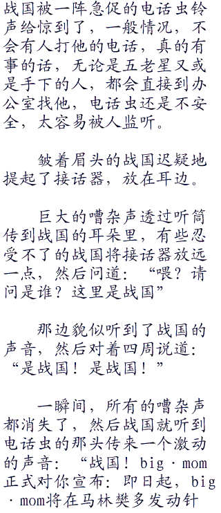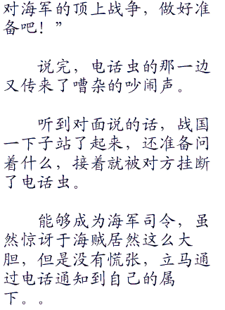一个被提拔上来的海贼正跪在big·张巨大的椅子下面,战战兢兢的朝着big·着汇报,显然他已经知道他的上任发生了什么。