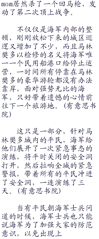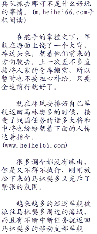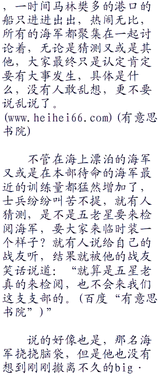 就这样,短短的通告会议结束了,没有海军什么事,就是中断了现在的任务返回马林樊多而已,大家都知道肯定发生了什么事,但是都没有大嘴巴去问什么,万一上了岸被宪