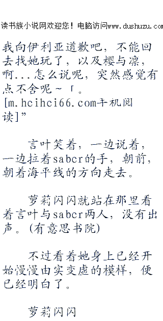 ;;;;慢慢的由远及近,直到saber从水面之上重新回到陆地之上时,saber对着言叶一笑。