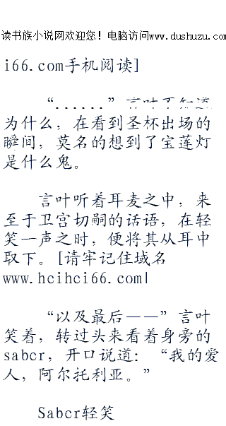 ;;;;言叶笑着,在最后伸出手按向了耳中的耳麦,对着耳麦对面那头的卫宫切嗣,笑着开口说道:“替
