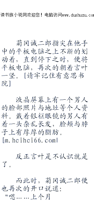 ;;;;言叶在心中无奈的骂了一声之后,便见到刚才被他踹到另外一边的菊冈诚二郎,一脸无所谓的表情再次举起了他手中的平板电脑。