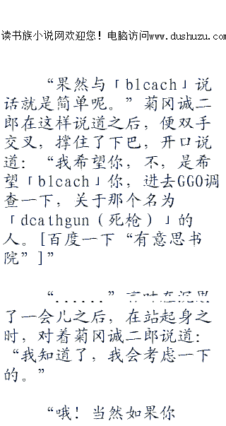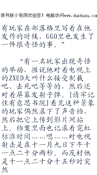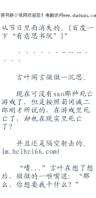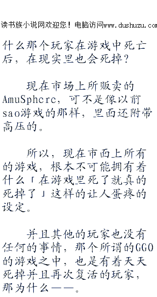 ;;;;而后,只见菊冈诚二郎如同拉家常一般的开口说道:“啊,其实啊,还有一件事情来着,是关于orpg(大规模在线角色扮演游戏)里,可以杀死现实世界里玩家的事情。”