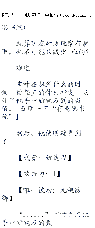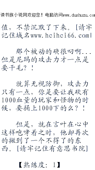 ;;;;所以,言叶现在也算是游戏新手,但是对于系统那个不坑爹不舒服的设定早已习以为常的言叶,所以言叶在最开始就没想着能够平安无险的出现在普通新手玩家出现的地方。