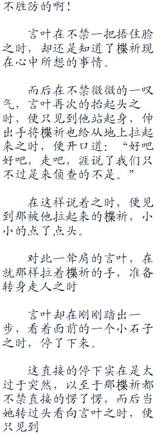 而后,就在言叶在心中这样胡思乱想,正准备一扭转身子,改变方向再次一个空蝉走人之时——