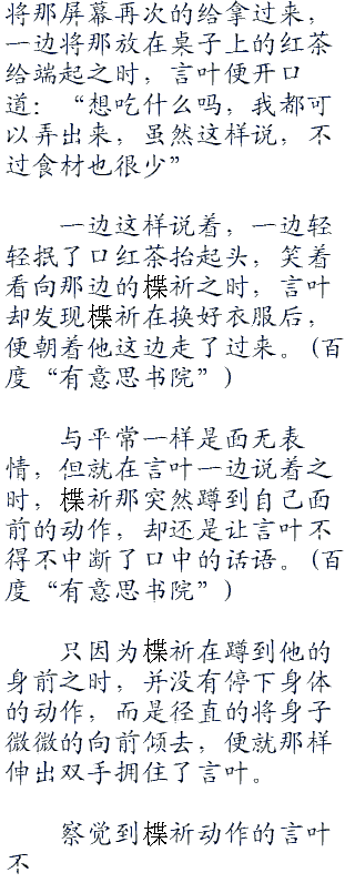 不知道为什么的,言叶倒是很喜欢看人的眼睛,毕竟,眼睛是不会说谎的,当然,000三无角色除外。