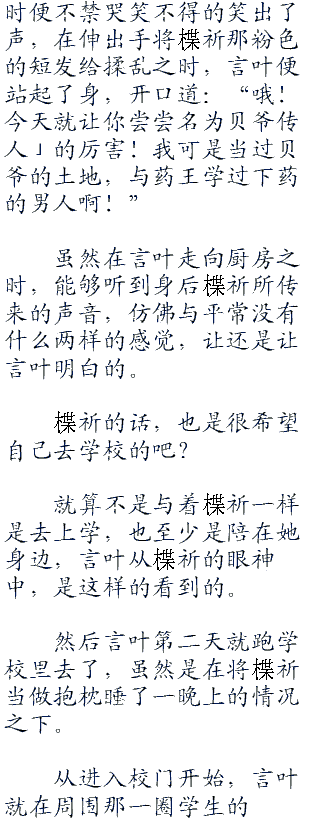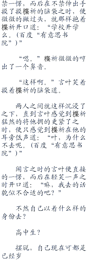“那12、那个...”站在言叶身旁的诗乃,在听到言叶刚才的话语之时,却突然的出声了,然后当言叶转过头去,看着诗乃脸上那犹豫却微微有些激动不安的神色之时,不禁疑惑的一歪头。