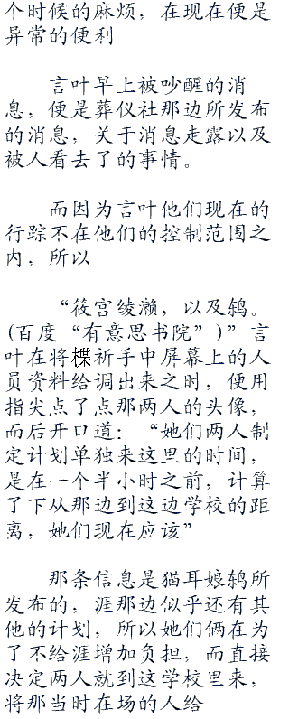 诗乃在看到那条信息的瞬间,一种连她自己都摸不清的莫名的情感,开始弥漫在她的心中. ...