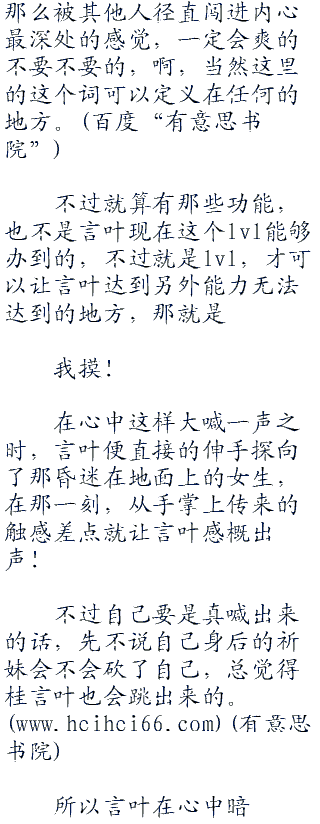 “嘛,叶你的话...到底多少有些清楚呢,为什么会这样的理由。”桐子在看到言叶那无奈的表情之时,便径直的轻笑一声,微微的抬起双手,捧住了言叶的脸颊,开口说道:“嘛...不过现“零零零”在已经是晚上10点多了,有点晚了呢,我也必须要回家的,所以呢,叶你也早点休息吧,熬夜可是不好的啊。”