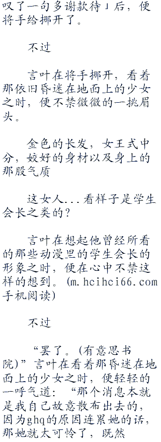 “嘛嘛,反正最后一句话是主题不是。”言叶对着笑着一摊手,然后,言叶在一笑之时,
