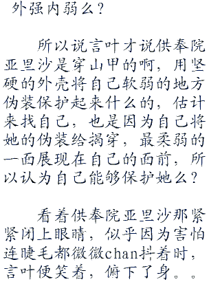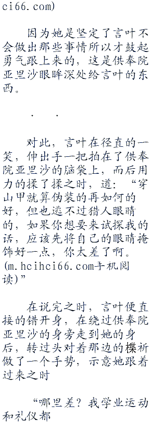 但是,就算诗乃不接受,她却也悲伤的发现,她却依旧是完完全全的挣脱不开言叶的束缚的。