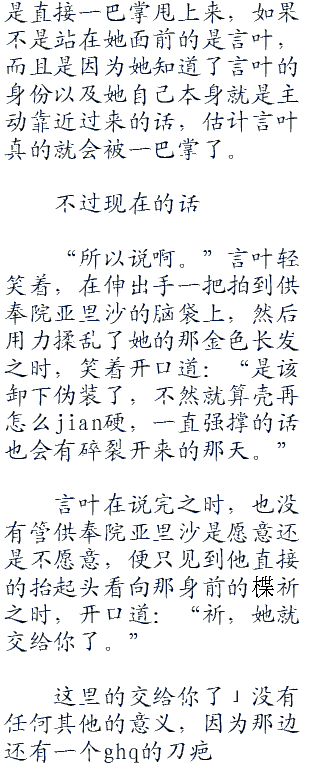 言叶在这样说完之后,便闭口不言,只不过将诗乃给抱的更紧了。