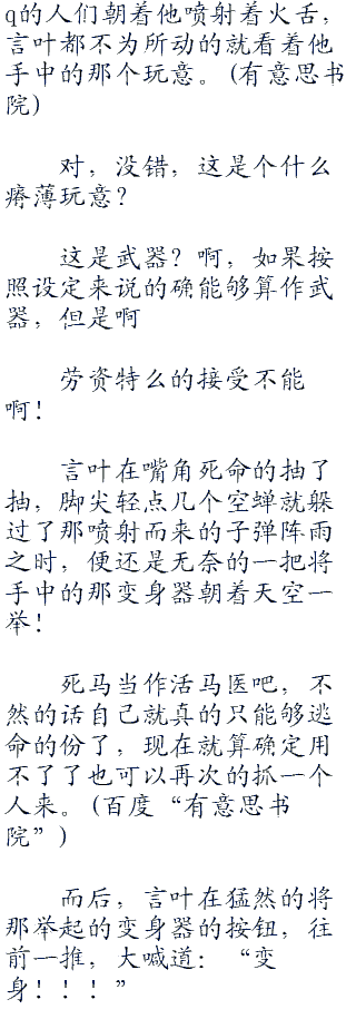 “不一样...完全不一样...叶...你是那么的强...而我...我只不过...”诗乃在闻言之时,便将言叶给抓的更紧了,只不过,诗乃的话语,到最后慢慢的被哭腔所代替了. .......