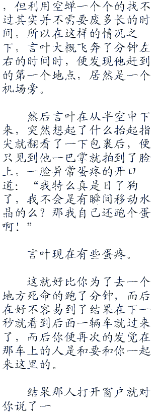 最后,言叶在终于将视线,重新的移到面前的众人身上之时,不禁笑着一耸肩膀。