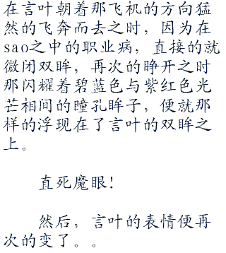 而后,就在言叶这样想着的时候,便只见到幸在瞬间跑到自己的面前之时,喊着:“叶!叶!看这个!”