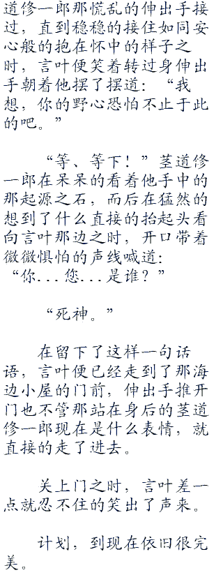 言叶在一边想着一边摇着头之时,便走到了爱因兹贝伦城堡的大门处,然后在他径直的推开门之时——