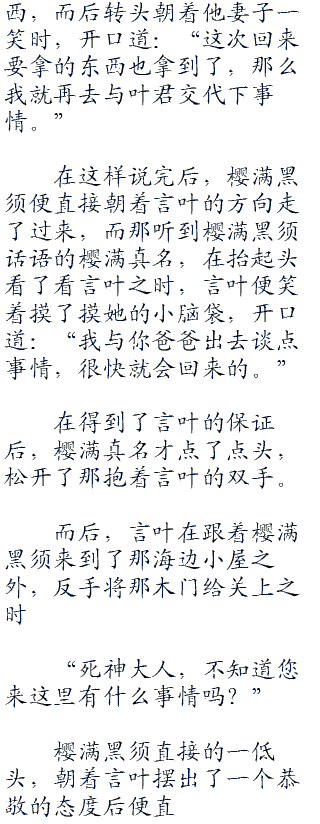 言叶在与卫宫切嗣那一脸苍白,张开口发出呃的声音,并且似乎都能看到那白色的灵魂从卫宫切嗣的口中冒出来不同,言叶在心中这样这样想着之时,便只见到在伊利雅喊出那样的话语之后——