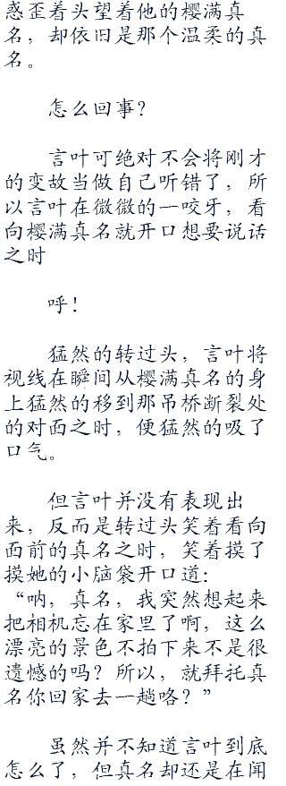 c妈在猛然一愣,下意识的撇过头看去之时,却只见到,在她的面前,铺满了樱花的色彩。