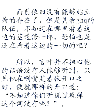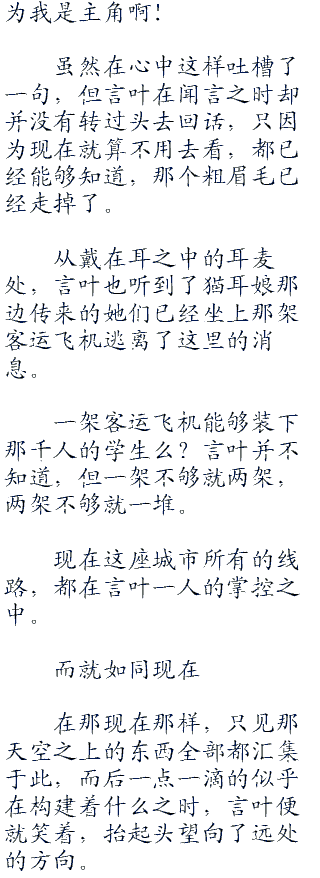 这三种自大的情绪混杂在一起之时,便形成了现在这种,让言叶露出嘲讽与戏谑目光的场景。
