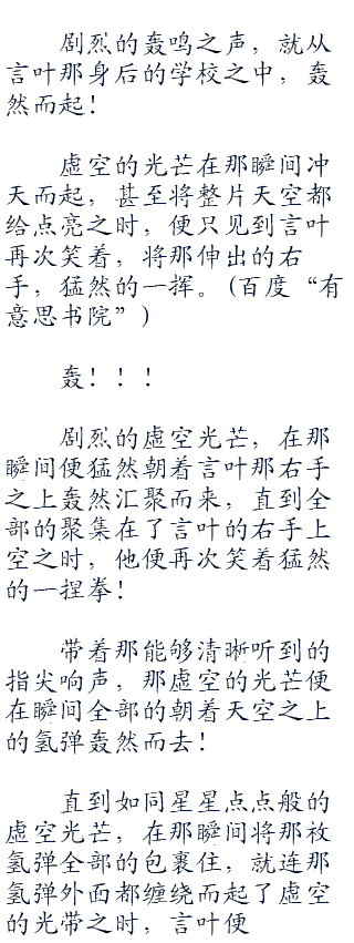 现在赶到,并且站立于那原本言叶与少女闪闪所战斗地方边缘的saber与凛,却呆滞的看着她们的面前,只有她们才知道,那看起来毫无力道也没有任何伤害的一击,到底是有多么的强大!