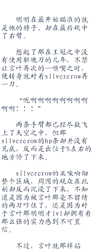 言叶在看着lily,笑着一耸肩之时,便再次的听到巴姐那边所传来的话语——