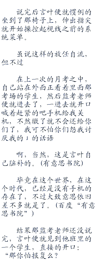 (ps:果然说了那投票的事情后,才知道的么...我刚才算了算网页上的投票和书评区的,发现投票最多的是王冠,而后是加速,这两个几乎碾压其他的世界啊。看╚毛╚线╚小╚说)