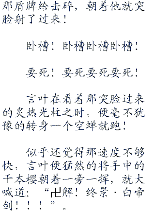 不过,红a虽然就是卫宫士郎,但现在的卫宫士郎给是完全理解不了这样的招数的,所以,只见卫宫士郎在死命的躲开之时——