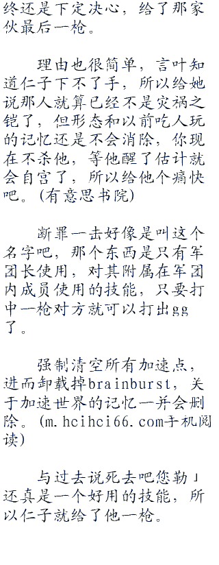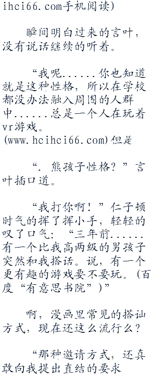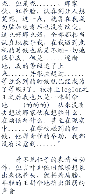(ps:准备加快进度了,现在卡文卡的不要不要的...哈...现在的剧情已经进入后期接近结尾了...大概。看♀毛♀线♀小♀说)