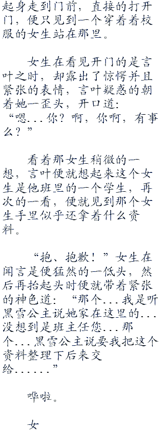 樱明白的,言叶并没有偏心于任何一方,也据对不会抛下她,从最开始她就明白的。
