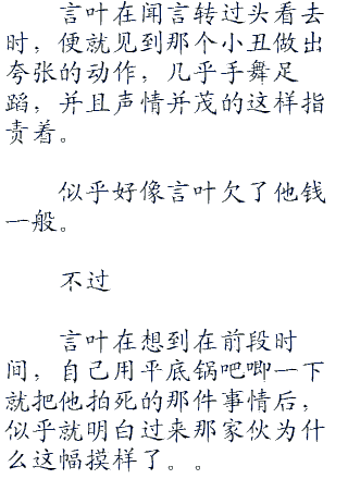 “哈...”言叶在一脸哭笑不得的睁开眼眸,看着面前他拿在手中的那叠钞票笑的嘴角一抽之时,便一脸纠结的将那叠钞票再次的给丢尽了包裹之中。