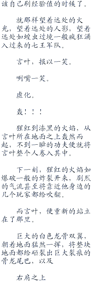 言叶在那瞬间便闪现到了尼禄的面前之时,看着面前那身上缠绕着漆黑火焰,还没有从言叶刚才那一击回过神来的尼禄之时,言叶便直接的握爪,朝着尼禄的脖颈袭去!