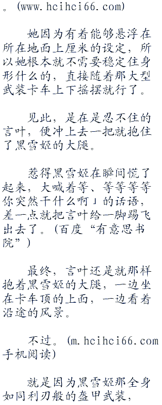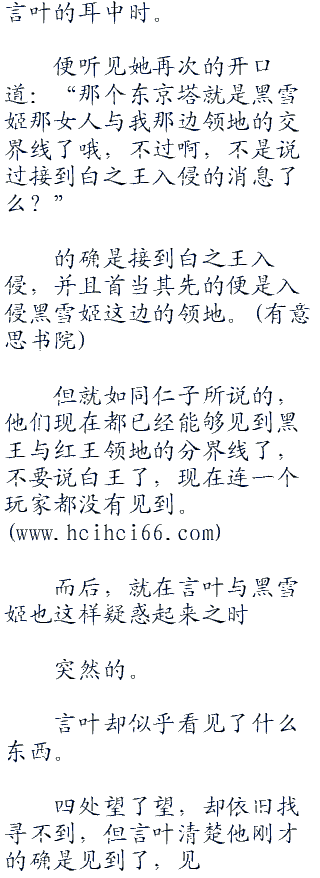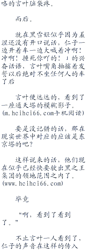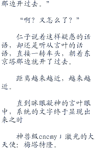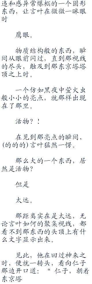 (ps:一直想发个通告,结果一直忘记了,嘛,也不算是通告,就是啊...在一个星期之前的时候,我和群里的某只逗比聊了会,也就是关于这本书的,怎么说呢...我现在的这本书呢...少了某些东西,具体也说不出来,但是现在的世界没有了以前sao之时的感觉,他说我这本书写的最好的就是sao篇了,后面的不知道为什么的总感觉缺了些什么。看◇毛◇线◇小◇说
