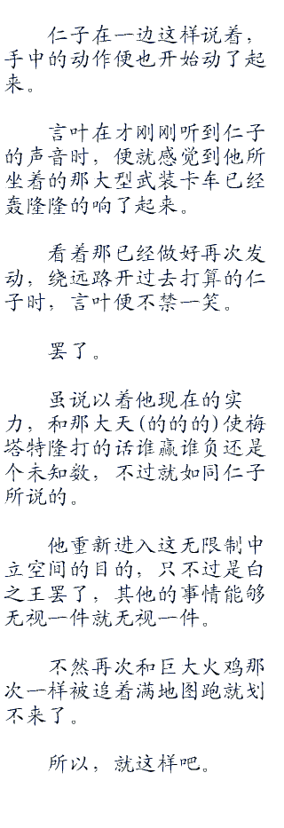 言叶在一脸无奈的看着他身旁的莉兹贝特之时,不禁就这样的陷入了沉思之中。
