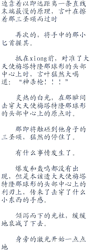 打开包裹拿出恢复生命药水,在径直的灌下口中之时,优纪便一边说着嗯嗯,决定了,就是大哥哥了哦!那么先按照约定,把我的这个原创剑技给大哥哥...啊...大哥哥这个能缓缓么?优纪可不是在耍赖哦!的话语时,一边操作着面前的系统面板,在似乎想起了什么之时,便抬起头看向了言叶,道:“那么!就决定是大哥哥——”