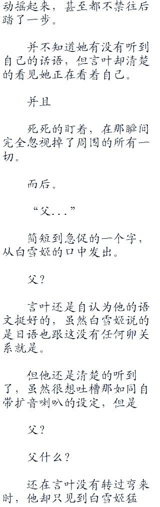 不过,先不谈言叶对于死亡这件事情的看法,光看最终她们还是会分别,并且还是永久的分别这个状况来看,言叶心中的萝莉控之魂可是第一个不答应的啊!