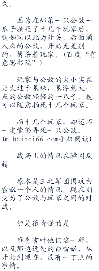 在那之后的很长一段时间之中,坐在那原地的优纪,与那些进入sao来刷怪的一些新手玩家,嘴角死命抽搐的注视之下,便只见到一个穿着着黑色和服,手握武士刀的男人,如同疯了一般的追着那野猪满地图的跑。