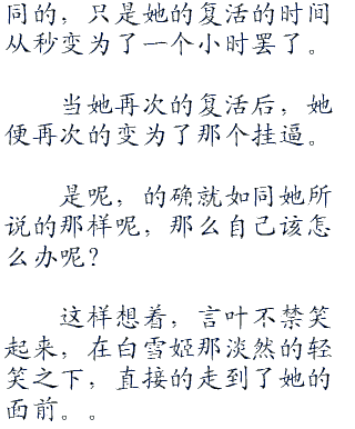 知道了亚丝娜没事的话,就等亚丝娜下次上线的时候,和她说说好了,毕竟言叶现在再怎么看亚丝娜的母亲不爽,但那毕竟是亚丝娜的母亲,并且也是亚丝娜的家事。