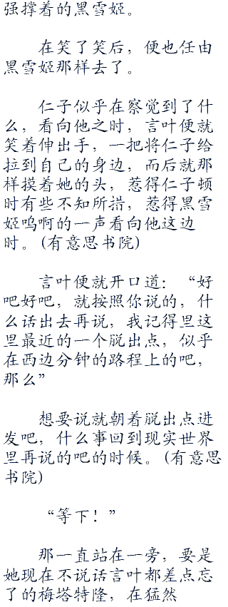 她们似乎也知道这一点,所以在接下来很长的一段时间之中,她们出现在言叶面前的次数愈来愈少,而相对的,优纪在言叶身边的次数与时间,便开始越来越多,多到了什么地步呢?