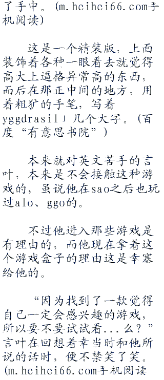 刚才就说过了,目前于艾恩葛朗特最前线进行攻略的玩家中,alo的老手占了八成左右,由旧sao回归的玩家则占约两成。看╮毛╮线╮小╮说