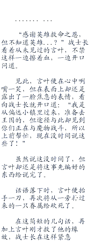 这件事情,优纪并没有对言叶说,反而是在兴奋的喊着哦!大哥哥我们去再攻略一层boss吧!我先去看看哦!的话语,便直接的挥动着那翅膀,飞出了那第22层的森林小屋。