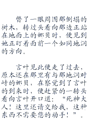 言叶在再次的咧嘴一笑...虽然现在是以着柊筱娅的身体,所以其实挺渗人的。