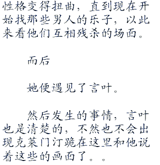 不过对于言叶那憋着笑意的表情不同,那因为身高差的缘故,现在已经完完全全的坐在言叶的身上,一只手掐着言叶脖子的克鲁鲁,却露出了言叶那异常熟悉的表情。
