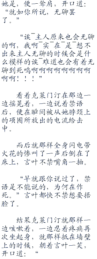 “哦?”克鲁鲁在看着言叶脸上那一脸无奈的表情之时,便带着调笑的语调道:“明明都已经被抓到了,却不怕死呢,人类。”