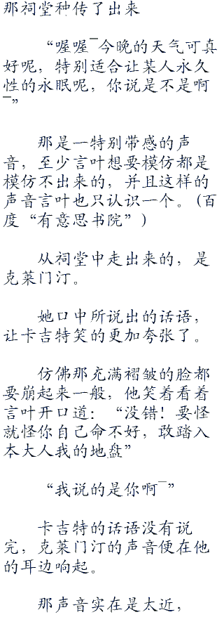 但是,言叶此行的目的可不是看百夜优一郎装逼收后宫收基友然后打败吸血鬼什么的啊。