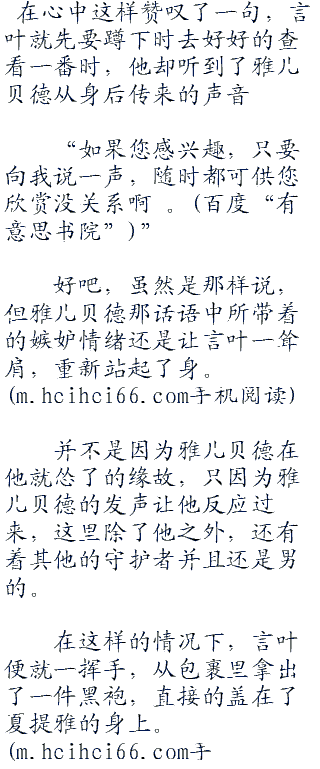 好吧...其实言叶真的还看不出来这妹纸脸上表情的变化的,毕竟那妹纸从始至终貌似表情都没有变化过,这样子——三无角色?