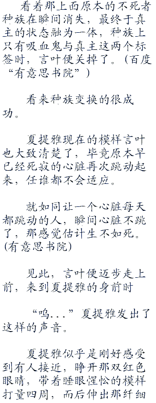 吸血鬼的属性,可是让言叶拥有了比起人类来说还要强大的感知与听力。